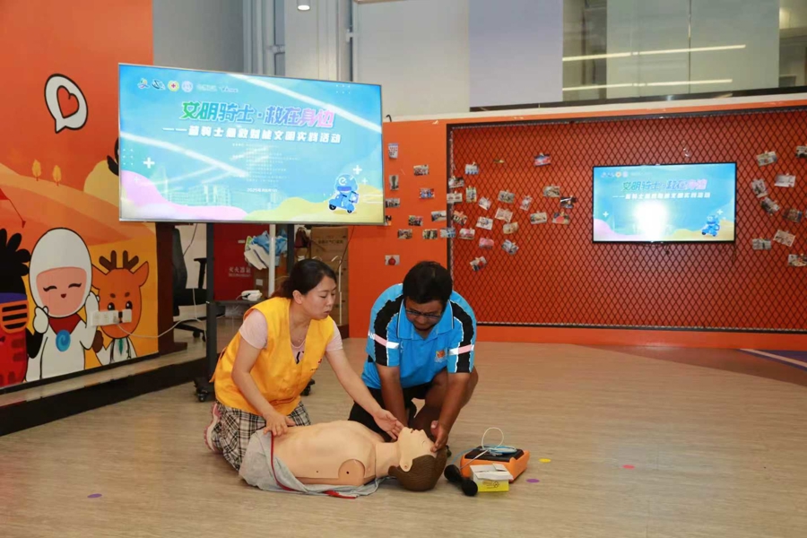 今年8月,普陀区新时代文明实践中心联合长风新村街道、淘宝闪购推出普陀区“文明骑士·救在身边——城市骑士急救赋能”文明实践项目,根据快递小哥的送餐箱尺寸,量身定制200个小药箱。左文凯率先参与,不仅接受了区红十字会的心肺复苏、创伤包扎等专业培训,还领到了专属急救药箱。“现在救人更有底气了!”他的感慨,道出了项目的核心价值。