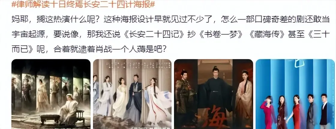 感觉这个应该是在找事找岔,不过有这样的言论,还上热搜,多半也是正儿八经在讨论这个话题。所以影视剧团队也要注意,设计海报封面之类的时,还真要谨慎,不要一不小心用了同类模版。